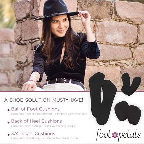 3/4 insert cushions keep feet from sliding forward and help prevent calluses from forming; eliminate ugly overhang and toe scrunch without compromising fit