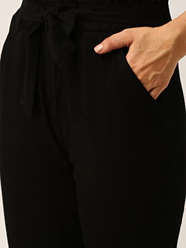 Make a stunning statement by wearing this comfort fit regular length black denim flared jeans.It Comes with belt loops with tie up dori,frayed at hem,high rise stretchable fabric and 2 handy pockets.Pair with high heels for any day out.